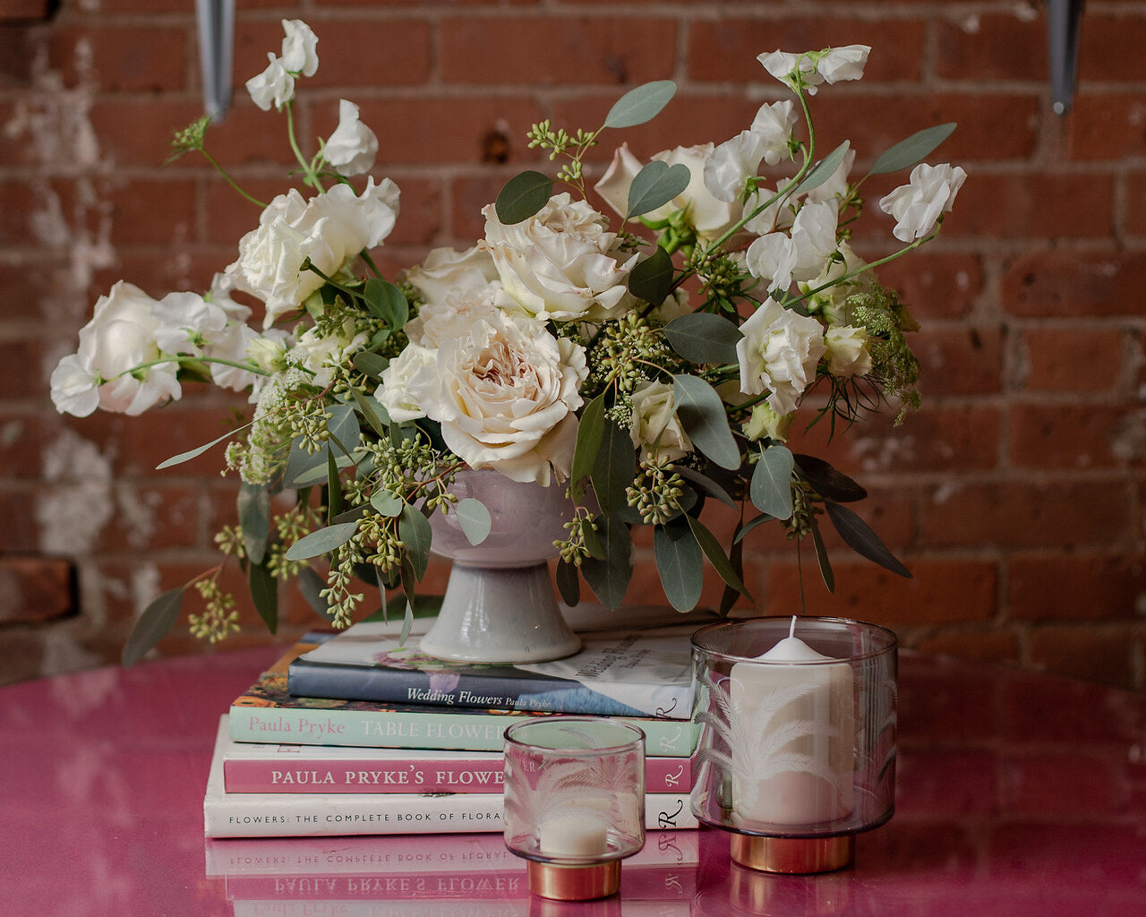 Our arrangements are created by our team of designers, each bringing their own artistic style to the palette. Expect variation in composition while maintaining the intended color story and feel. The flowers used in this photo are for inspiration; exact varieties may vary based on market availability and the season.